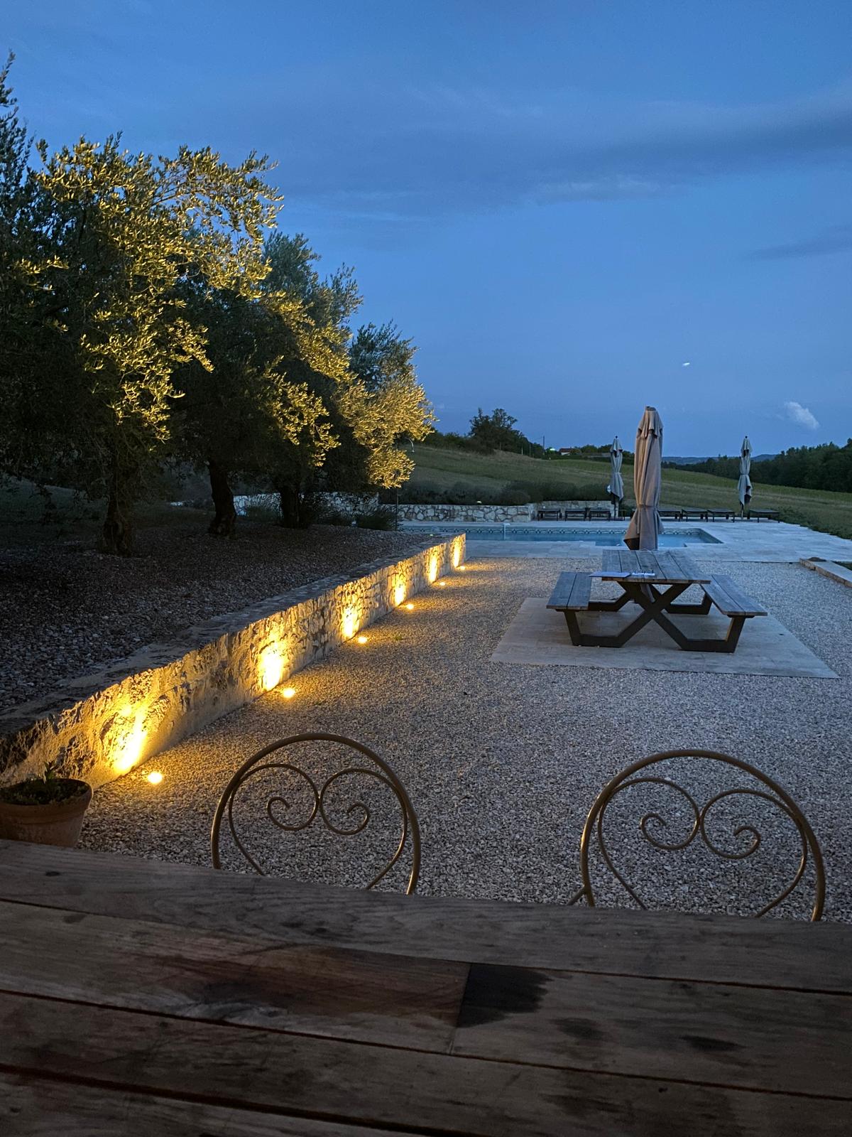 Na een dag vol ontdekkingen is het heerlijk thuiskomen, om zalig te ontspannen aan de rand van het zwembad, met een goed glas wijn en uitzicht op het groen.